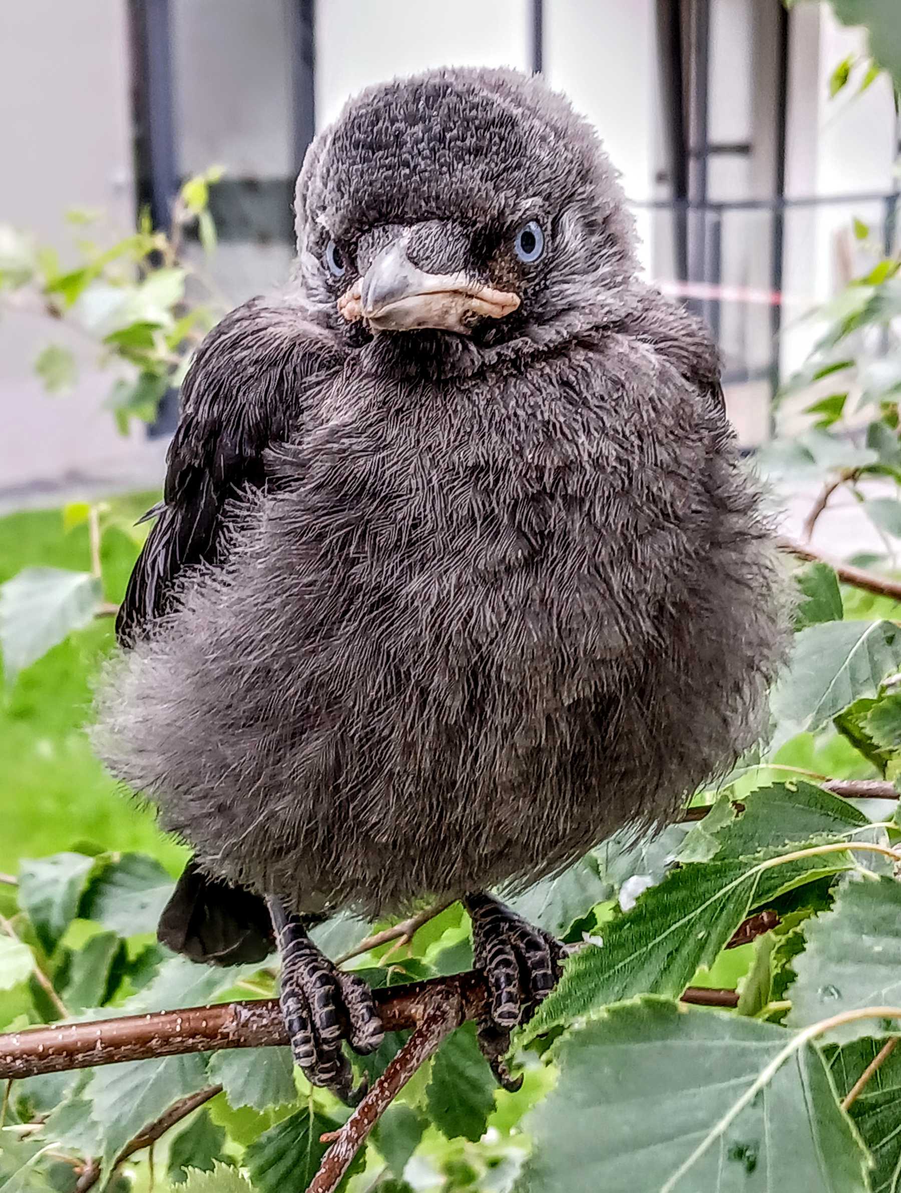 Danke für das Aufschreiben der Geschichte mit Ptak. Er war der erste Jungvogel den ich aufgezogen habe. Die ersten Tage kamen die Eltern nicht weil sie selber anscheinend durch den Kampf gegen die Möven verletzt waren. Ptak konnte erstaunlich laut rufen. Da brauchte ich keinen Wecker mehr stellen. Die Dohlen Eltern störte es nicht wenn ich fütterte. Mehlwürmer kommen nicht als natürliche Nahrung vor aber sicherten das Überleben. Die Dohlen fressen aber auch was die Touristen fallen lassen. Dohlen erkennt man an den blauen Augen. Manche Hotelgäste kritisierten:" Sie können doch nicht die ganze Welt retten. " Nein, aber ich kann die Welt von diesem einen Vogel und dessen Eltern retten. Noch etwas was ich gelernt habe : Nie Wasser in einen Vogelschnabel geben weil die Öffnung der Luftröhre im Schnabel ist. Wasser bekommen Vögel mit der Nahrung und nur wenn das nicht reicht, trinken Vögel. Jungvögel können auch an falschem Futter sterben, deswegen ist es wichtig zu wissen was für ein Vogel es ist. Dohle wusste zunächst niemand ( das Foto ist 2 Tage nachdem schon Mehlwürmer gefüttert wurden). Aber es war klar dass es eine Art der Rabenvögel ist und die werden alle gleich gefüttert. Vielleicht kümmern sich Vogel Liebhaber in Kolberg demnächst um Vögel in Not aufgrund dieser Geschichte? Polnische Naturschutz kümmert sich nur um Jungvögel "wertvoller bedrohter Arten " weil in allen Ländern gespart werden muss. Ich wollte nicht Ptak ,einige Meter von meinem Hotelfenster weg, beim verhungern zuschauen. Einige Kinder freuten sich sehr über Ptak. Das war in Kolberger Deep.
